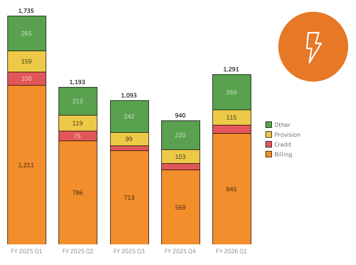 The July to September quarter is typically a busier period for complaints, driven by colder weather and end-of-financial-year price change notices. This year was no different, with just over 2,600 cases received – up by 27% from the previous quarter.